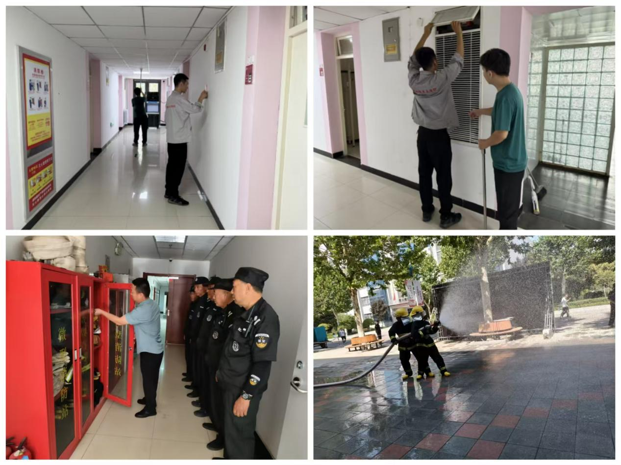消防护航,守护生命安全。消防人员联合维保单位,组织技术人员对校内所有消防设施开展全维度、精细化检测维保工作。逐一排查设备运行隐患,对老化部件及时更换、故障系统精准修复,确保所有消防设施处于完好有效状态。同时,对安保人员开展了消防实操培训活动。通过培训,让安保人员熟悉火灾发生时的应对流程,掌握正确的逃生和灭火方法,全面筑牢校园消防安全防线,为新学期师生的生命安全保驾护航。