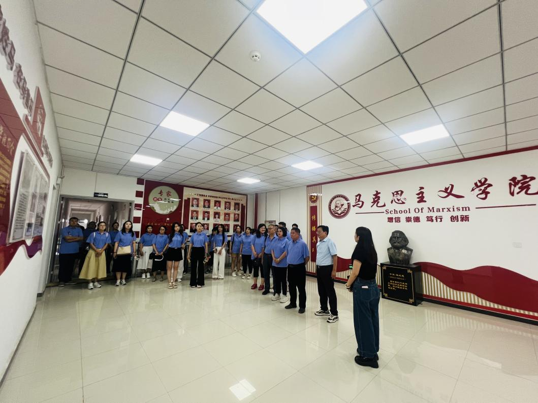 会后,哈尔滨剑桥学院马克思主义学院一行参观了西安工商学院马克思主义学院文化墙。