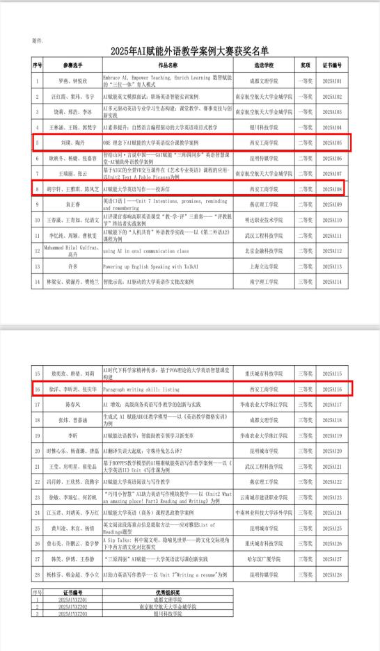 为深入贯彻党的教育方针,推进教育现代化与信息化,2025年AI赋能外语教学案例大赛近日落幕。经多轮评审,我校通识教育学院三支队伍脱颖而出,斩获二等奖两项、三等奖一项,彰显了我校外语教学数字化转型的扎实成果。