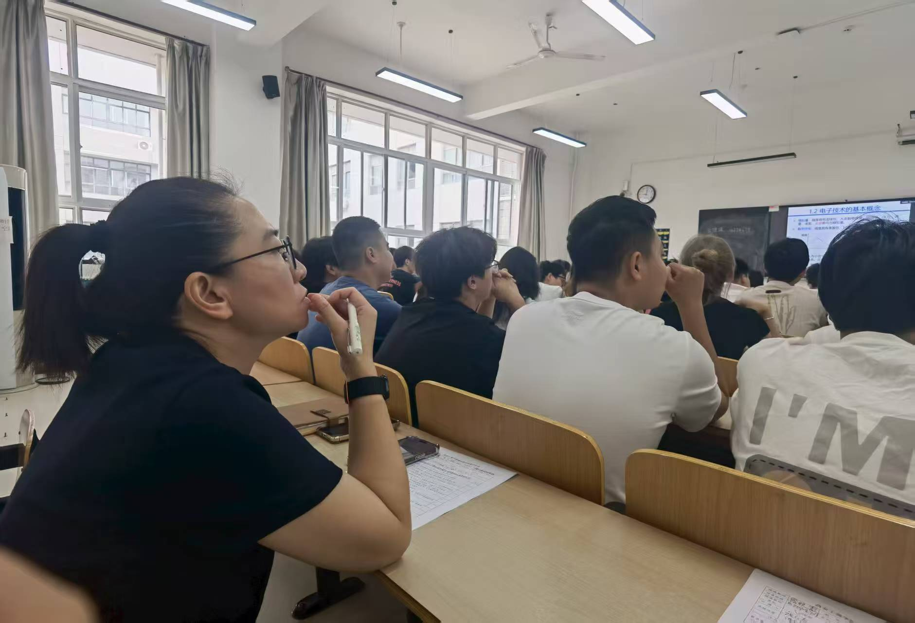 与此同时,其他校领导也分别前往不同的教室听课。党委书记崔亦国走进了思政课《习近平新时代中国特色社会主义思想概论》课堂,副校长杨欣欣则来到了《模拟电子技术基础》的的教学现场。在听课过程中,校领导们关注教师的教学方法、教学内容的呈现,也留意学生们的学习状态和课堂参与度。他们发现,教师们都以饱满的热情投入教学,教学设计新颖,注重知识的传授与能力的培养;学生们精神饱满,认真听讲,积极回答问题,展现出了良好的学习风貌。
