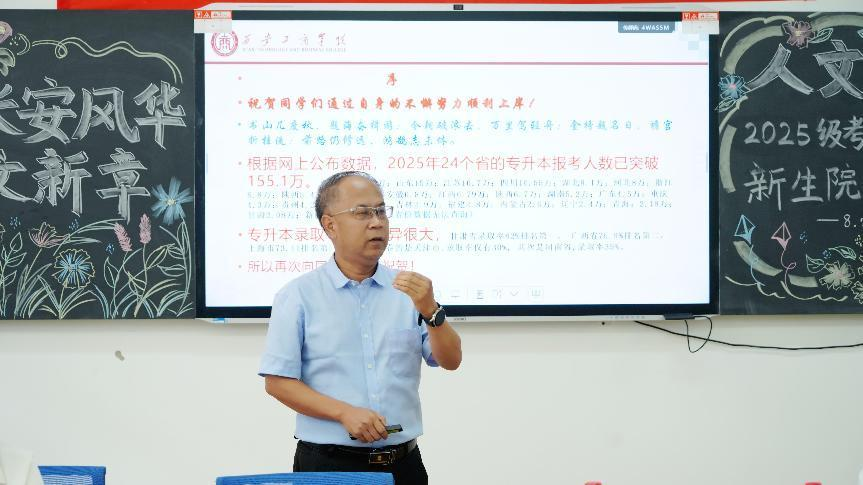 人文学院院长首先代表学院向新生及家长表示热烈欢迎,并系统介绍了学校与学院的发展历程、办学理念与特色。他结合当前就业形势与未来发展前景,激励同学们树立“学深悟透、学有所获、学以致用”的学业目标,努力成为“眼中有光、心中有梦、脚下有路”的时代新人,珍惜大学时光,实现自我超越。