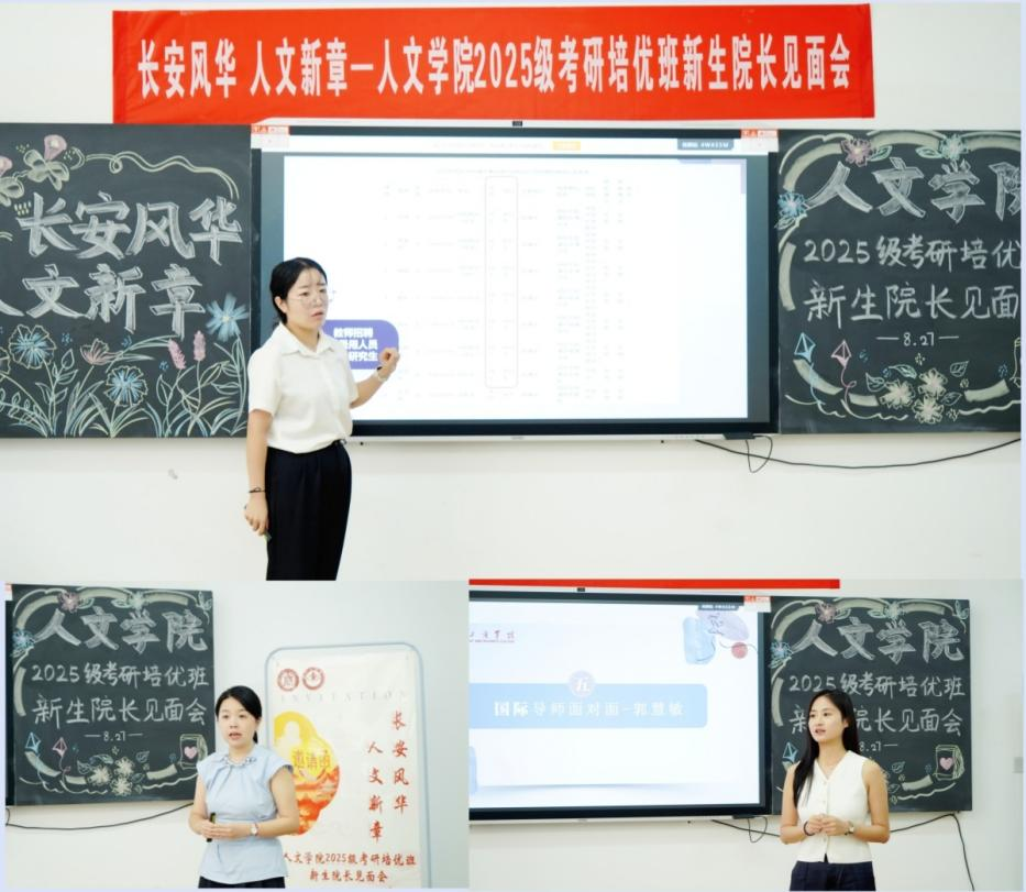 8月27日上午,人文学院在2-109教室举行2025级考研培优班新生院长见面会。人文学院院长,人文学院党总支副书记、副院长原朝阳,人文学院党总支书记、副院长王园园,国际教育学院乔奕桐,国际班导师郭慧敏,培优班辅导员李情和新生及家长齐聚一堂,共同迎接新学期的到来。本次会议由李情主持。