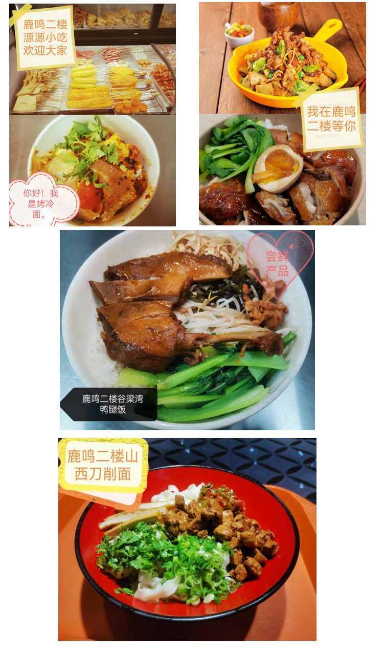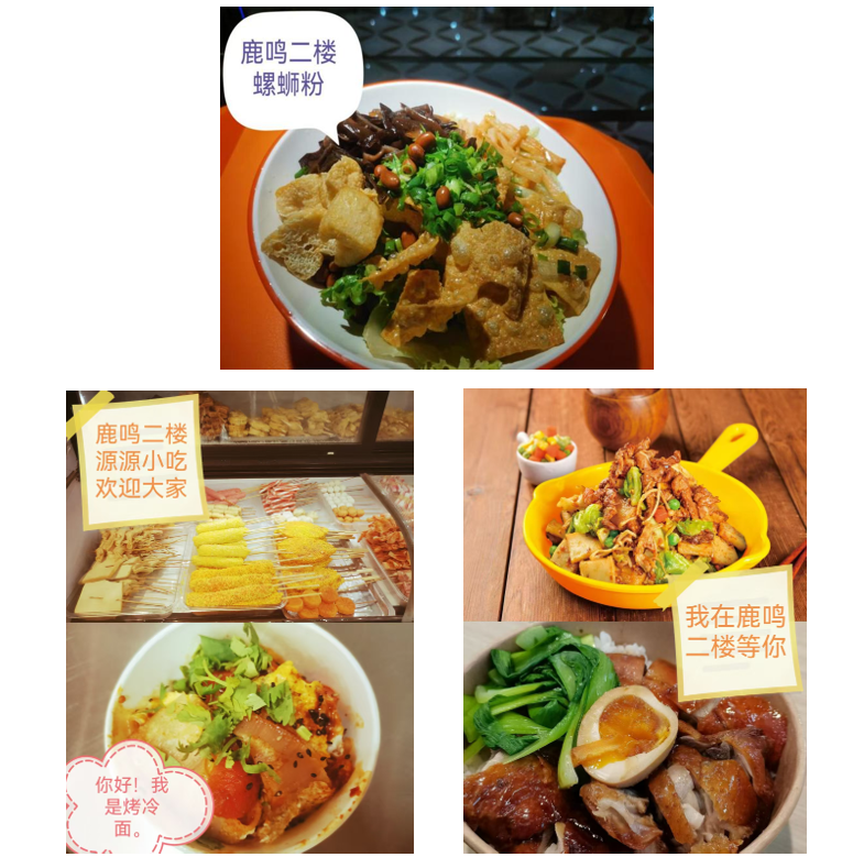 鹿鸣餐厅:与渭上公寓面对面,1层有有各类稀饭、包子、饼夹菜等营养早餐和各种地方特色美食,2层是特色小吃和深夜炸串。