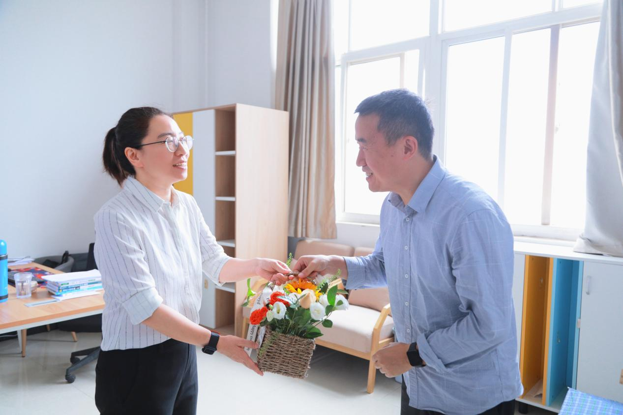 秋韵荡漾,桂子飘香;教坛耕耘,春华秋实。9月10日上午,我校副董事长龙和平、校长廖民生、党委书记崔亦国、副校长程波、副校长杨欣欣分别带领相关职能部门负责人深入教学一线,走访慰问教师代表、国际一流课程团队、教学名师、保安保洁等教职员工,为大家送上节日鲜花,向辛勤耕耘在教育岗位上的教工们致以节日的问候与关怀。