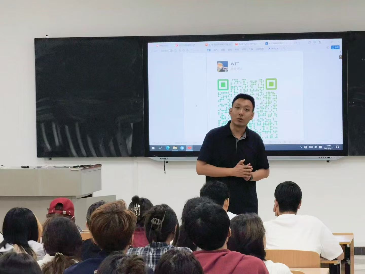 宣讲会由福州立晓传媒陕西地区负责人、资深经纪人王召旭主讲。他首先介绍了公司的发展历程、业务板块及行业资源,并通过案例分享展示了企业在艺人培养和内容打造方面的成功经验。随后,他对本次招聘的实习岗位职责、能力要求、发展路径等作了细致说明,并就实习待遇、工作地点、考核方式等学生重点关注的问题进行了耐心解答。现场互动频繁、气氛热烈,同学们踊跃提问,王召旭也一一给予务实而诚恳的回应。