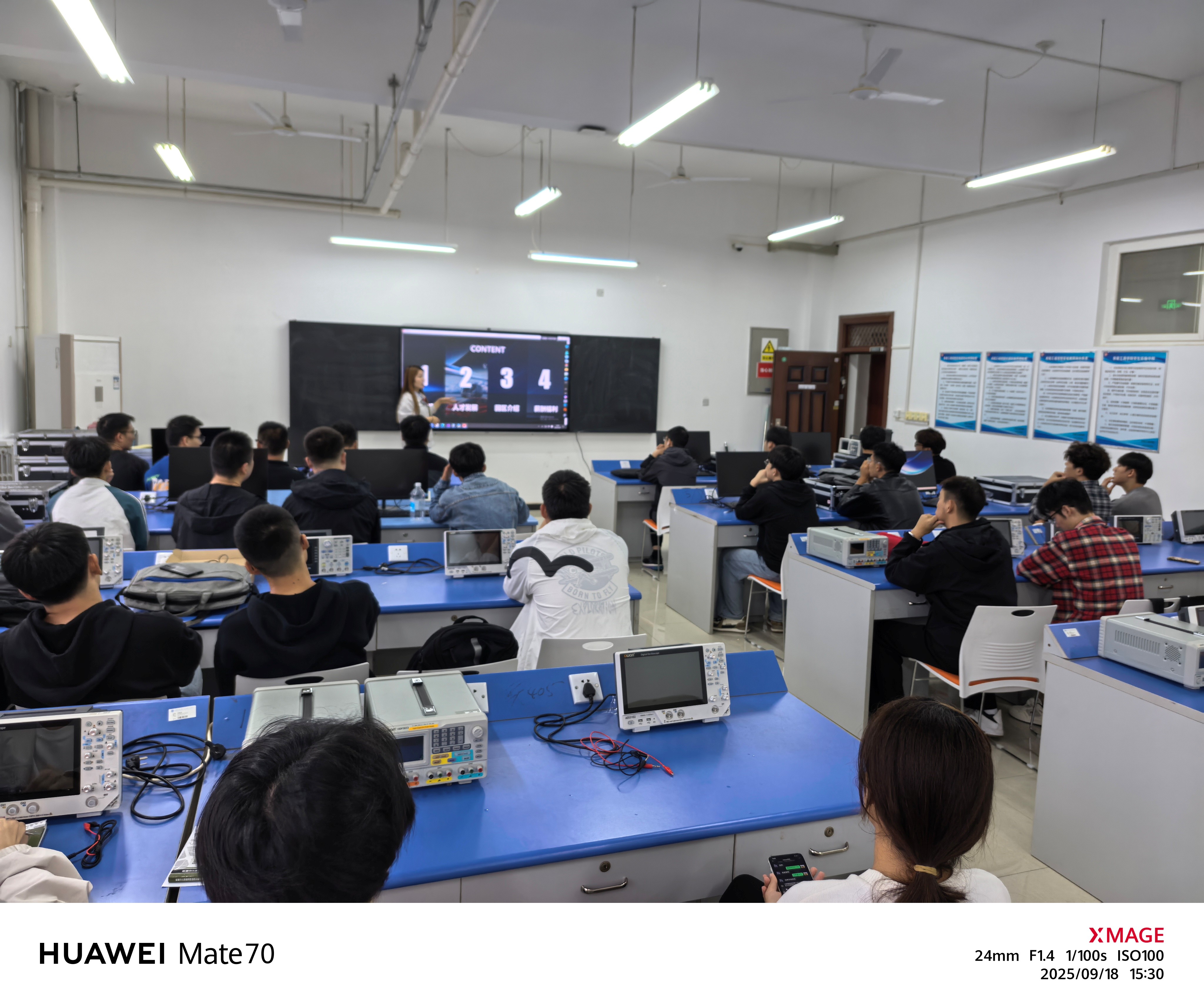 比亚迪十四部景彩彩经理人从公司概况、人才发展培养、薪酬福利、招聘岗位四个方面展开介绍。其中,"技术为王,创新为本"的宣传语给同学们留下了深刻的印象,并对比亚迪公司的发展理念有了更深入的了解。同时,同学们高度认同比亚迪“用技术创新满足人们对美好生活的向往”、推动社会可持续发展的发展理念。而后,宣讲负责人从自身工作经验出发,对福利待遇、工作生活环境及个人发展前景等方面作了分享,帮助同学们做出更全面的选择。