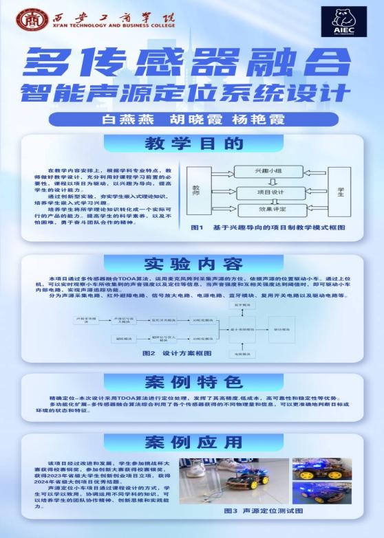西安工商学院白燕燕胡晓霞杨艳霞教学团队所提交的《多传感器融合智能声源定位系统设计》课程案例,以其鲜明的应用特色、深度的产教融合以及独特的价值引领,赢得了评委们的一致好评。获得本次案例三等奖。