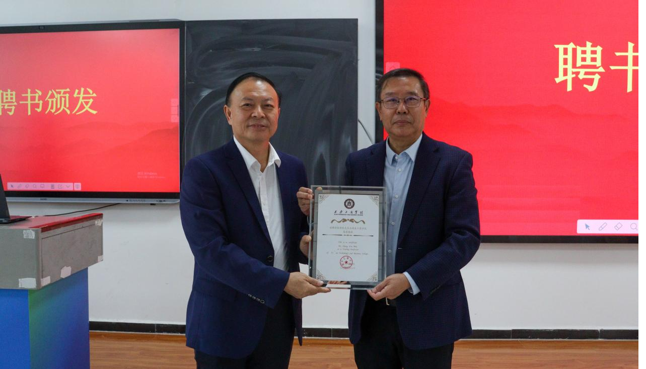 廖民生校长向张新民教授颁发聘书