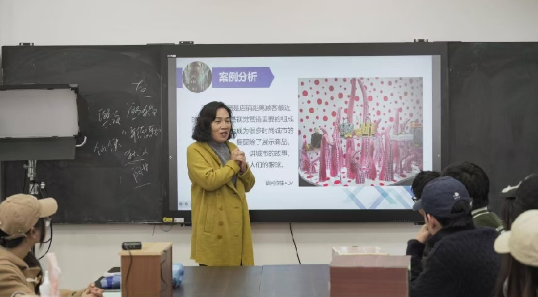 讲座伊始,刘湉老师便以独特的视角,突破了传统橱窗设计“美观陈列”的单一认知框架,引导学生从品牌叙事、消费心理触点及主题营销三大维度重构设计逻辑。她指出,现代橱窗设计不仅是商品展示的窗口,更是品牌故事讲述和消费者情感联结的桥梁。在讲解过程中,刘老师巧妙融入了AI互动橱窗、可持续材料等前沿技术案例,展示了橱窗设计的数字化与可持续化发展趋势。这些生动的案例不仅拓宽了学生的视野,更为他们提供了将传统设计理念与现代科技相结合的新思路,助力学生突破静态陈列思维,掌握数据驱动型设计方法。
