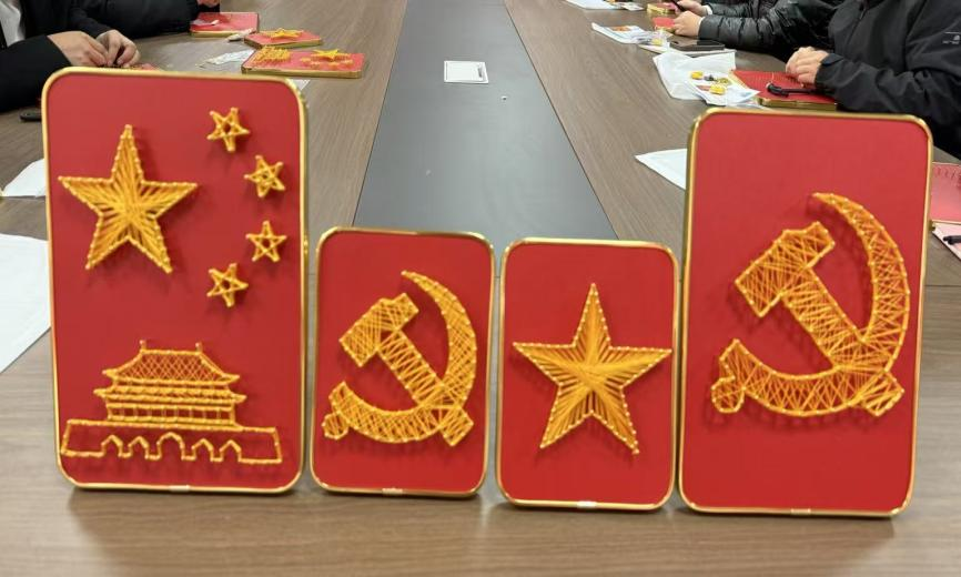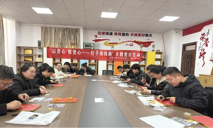 为深入学习贯彻党的精神,加强党员理想信念教育,传承红色基因,近日,西安工商学院机电工程学院党总支在实验楼301会议室成功举办“以匠心,敬党心——钉子绕线画”主题党日活动。机电工程学院党总支部分师生党员齐聚一堂,以手工创作的独特方式,抒发对党的崇敬与热爱。