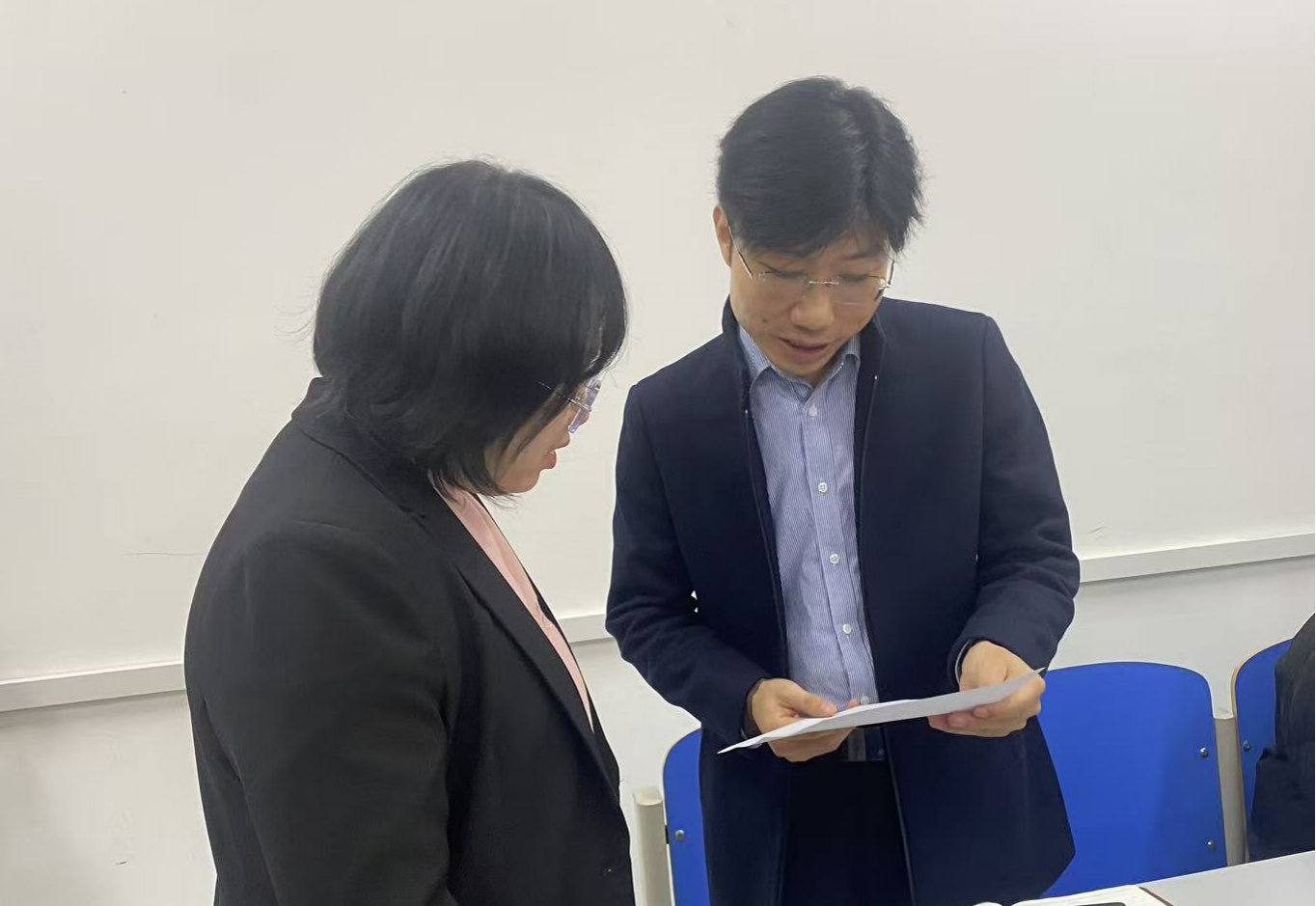 副校长程波在听课过程中认真记录,仔细观察教师的教学组织和学生的听课状态。课后,他与杜潇颖老师进行了深入的交流,认为本节课准备充分、内容详实、逻辑严密,教学方法灵活有效,能够将理论知识与时代发展紧密结合,展现了思政课的思想性、理论性、亲和力、针对性。