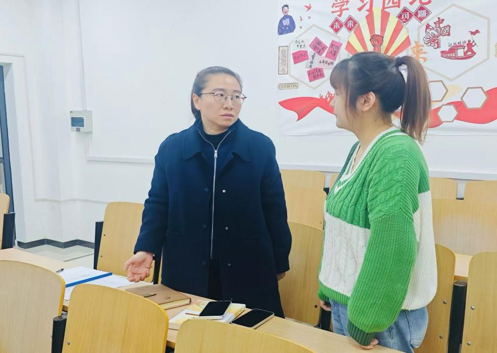 为深入落实教育部社科司2025年秋季学期全国高校思政课教学“提升行动”部署要求,切实守好思想政治教育主阵地,近日,西安工商学院副校长杨欣欣走进课堂一线,随堂听取马克思主义学院曾海霞老师讲授的《马克思主义基本原理》课程,实地了解思政课教学开展情况。课后,杨欣欣与曾海霞老师进行深入交流,并就进一步提升思政课建设质量提出指导意见,着力推动思政课教学提质增效。