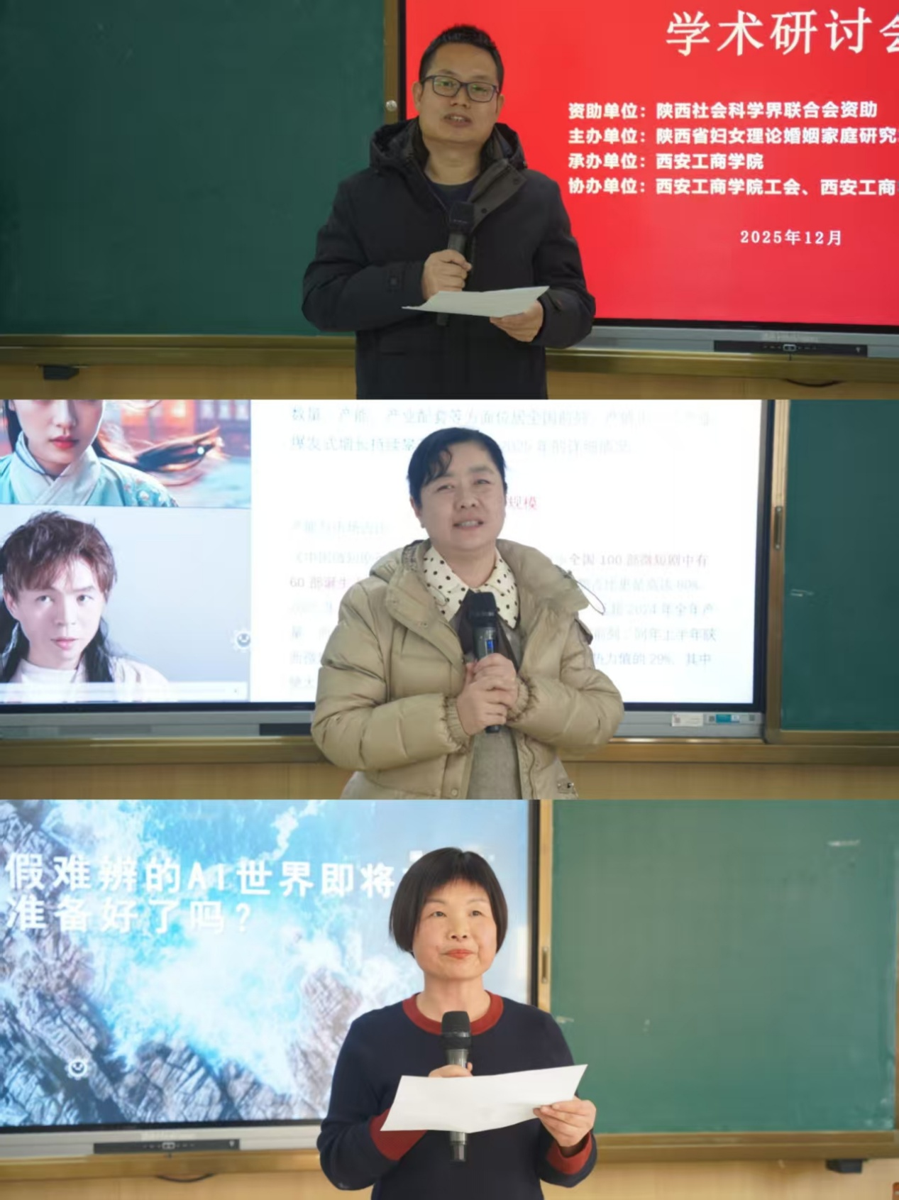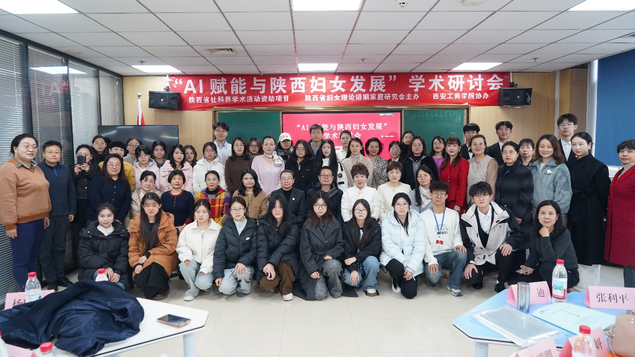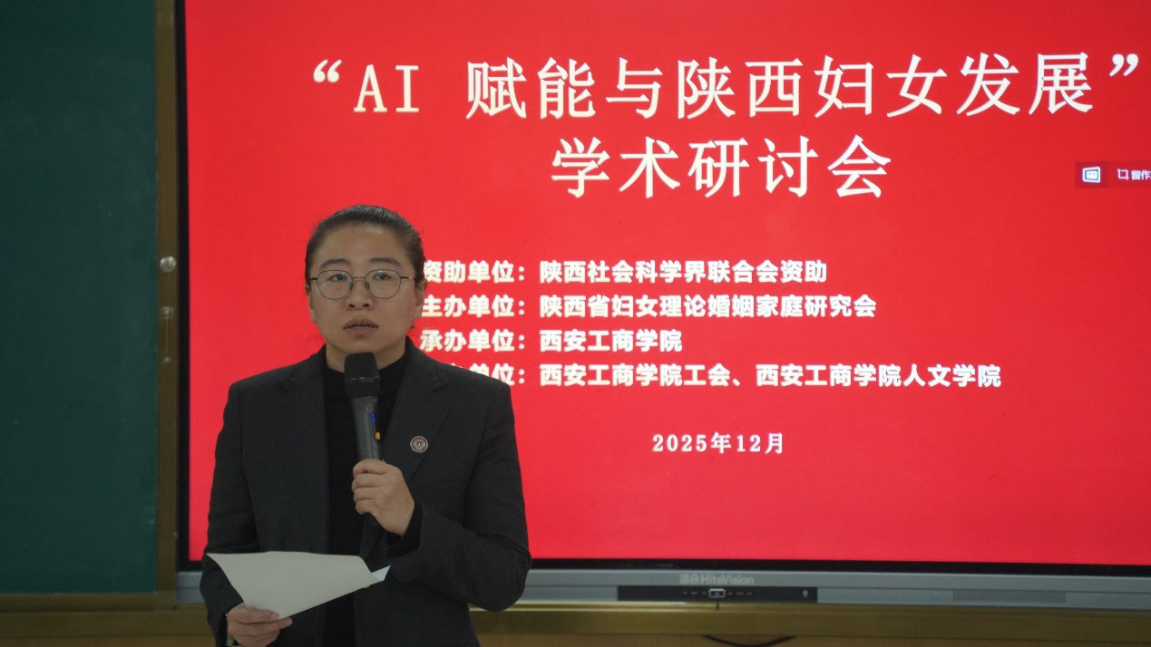 12月6日,由陕西省妇女理论婚姻家庭研究会主办,西安工商学院承办,西安工商学院工会、西安工商学院人文学院协办的主题为“AI赋能与陕西妇女发展”学术研讨会在西安工商学院召开。本次研讨会由陕西省社会科学界联合会资助,目的是更好弘扬巾帼力量,激发女性智慧,助力社会发展。陕西省社会科学界联合会四级研究员边瑞卿,西安工业大学文学院副院长吴妍妍,西安工商学院工会主席、副校长杨欣欣,工会副主席、女工委员会主任宋亚萍,党委教师工作部部长、人事处处长闫海霞,人文学院党总支书记、工会主席王园园等54位来自省内外相关部门和高校教师代表莅临本次会议。