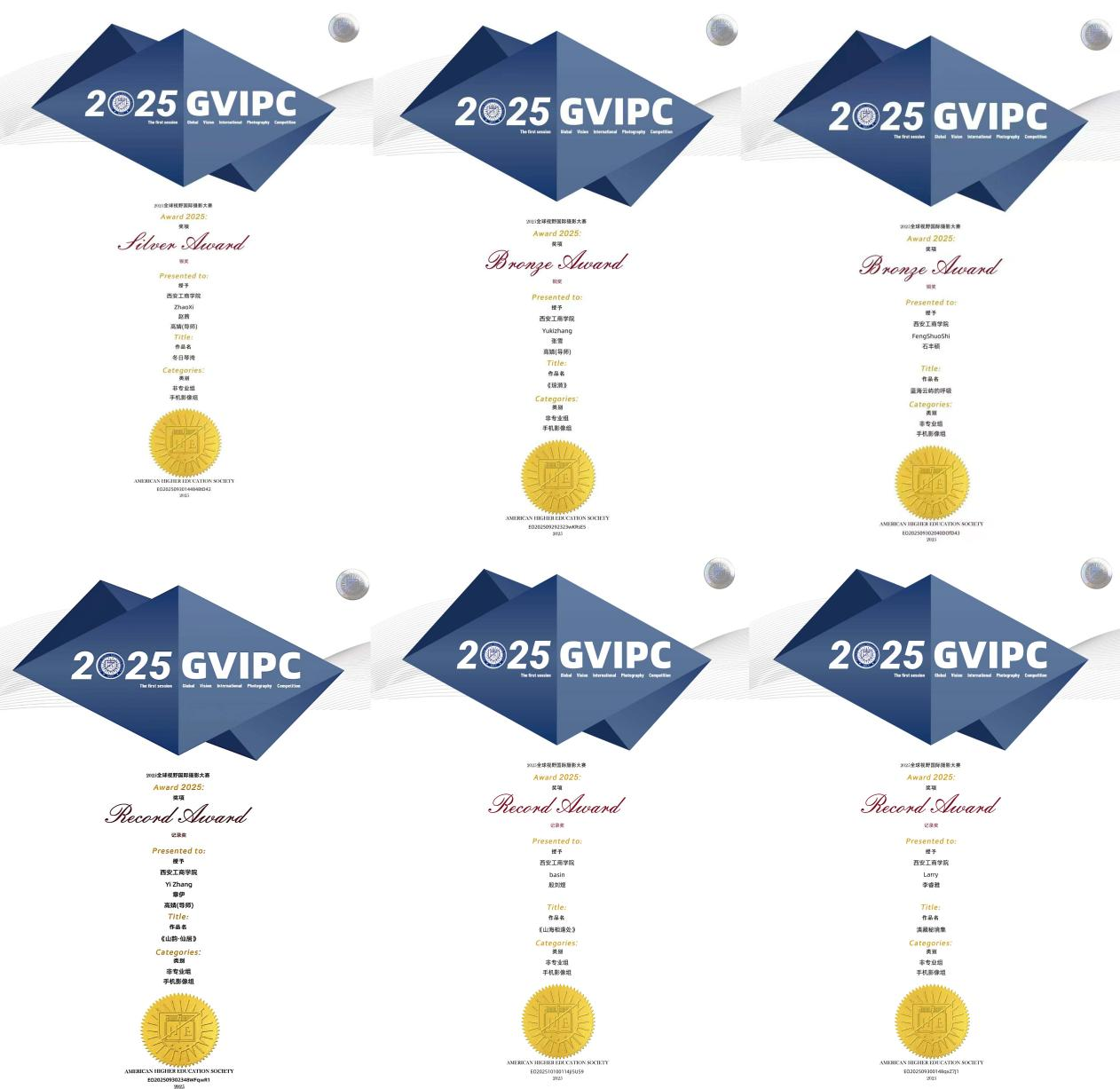 近日,2025全球视野国际摄影大赛(GVIPC)结果揭晓。西安工商学院人文学院团队表现出色,为我校学科竞赛成绩再添硕果。其作品从全球上千部参赛作品中斩获6个奖项,包括1银、2铜和3个记录奖。人文学院位1教师被评为“优秀指导教师”,西安工商学院获得“优秀组织奖”,此次被授予“优秀组织奖”共2家。