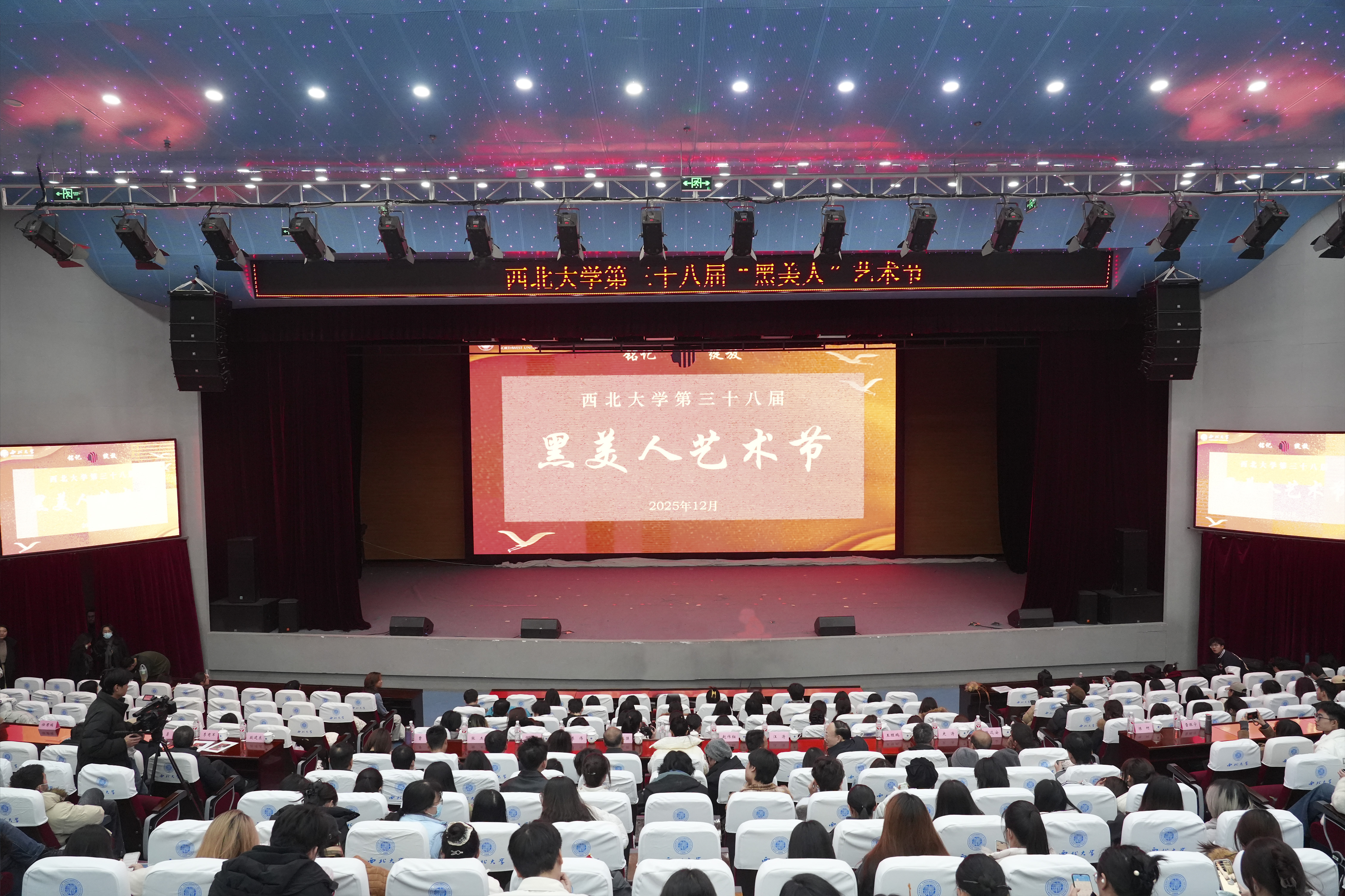 近日,应西北大学文学院邀请,艺术与传媒学院影视编导系导演专业学生、影制系影视创作训练营学员和指导教师共43名师生代表,一同前往西北大学长安校区,观赏西北大学举办的第三十八届“黑美人”话剧艺术节优秀剧目展演活动。观演学生由艺传学院辅导员张薇、于侗昕,影制系指导教师丁俊武组织带队,微影星火数字传媒产业学院给予资助。