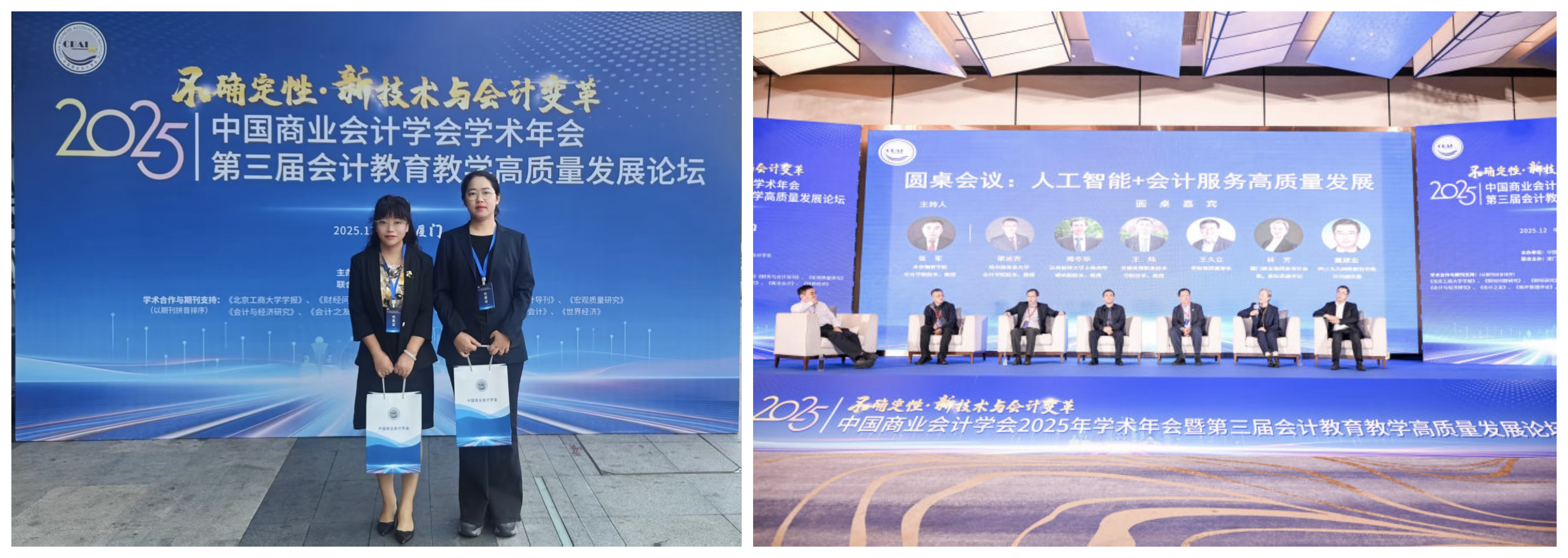 为深入贯彻党的二十届三中全会精神,主动对接数字经济时代财会教育变革需求,在西安工商学院智能会计产业学院的大力支持下,经济与管理学院财务管理系主任王海芳、专职教师王虹受邀于近日前往厦门参加中国商业会计学会主办的“2025年学术年会暨第三届会计教育教学高质量发展论坛”。本届论坛以“不确定性新技术与会计变革”为主题,通过主旨报告、专题研讨与平行分论坛等形式,深入探讨数字化转型、产教融合与财会教育新生态。