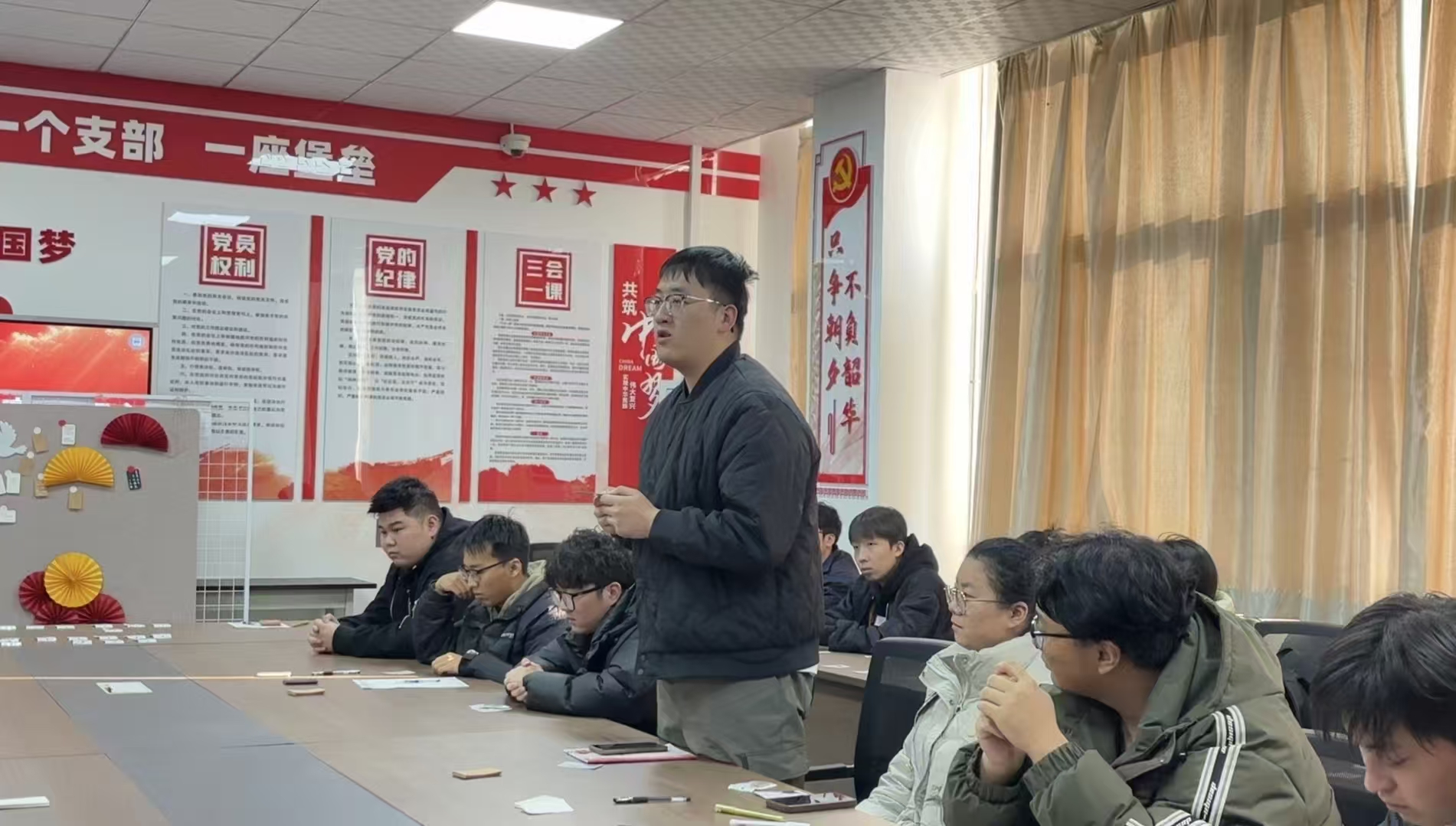 “支部分享·共话初心”环节中,第一至四支部的学生代表依次分享自己摘抄的语录及选择初衷。代表们结合学业科研、学生工作等岗位实际,畅谈如何将语录精神融入日常,在实践中践行青年党员的责任与担当,现场交流氛围热烈。