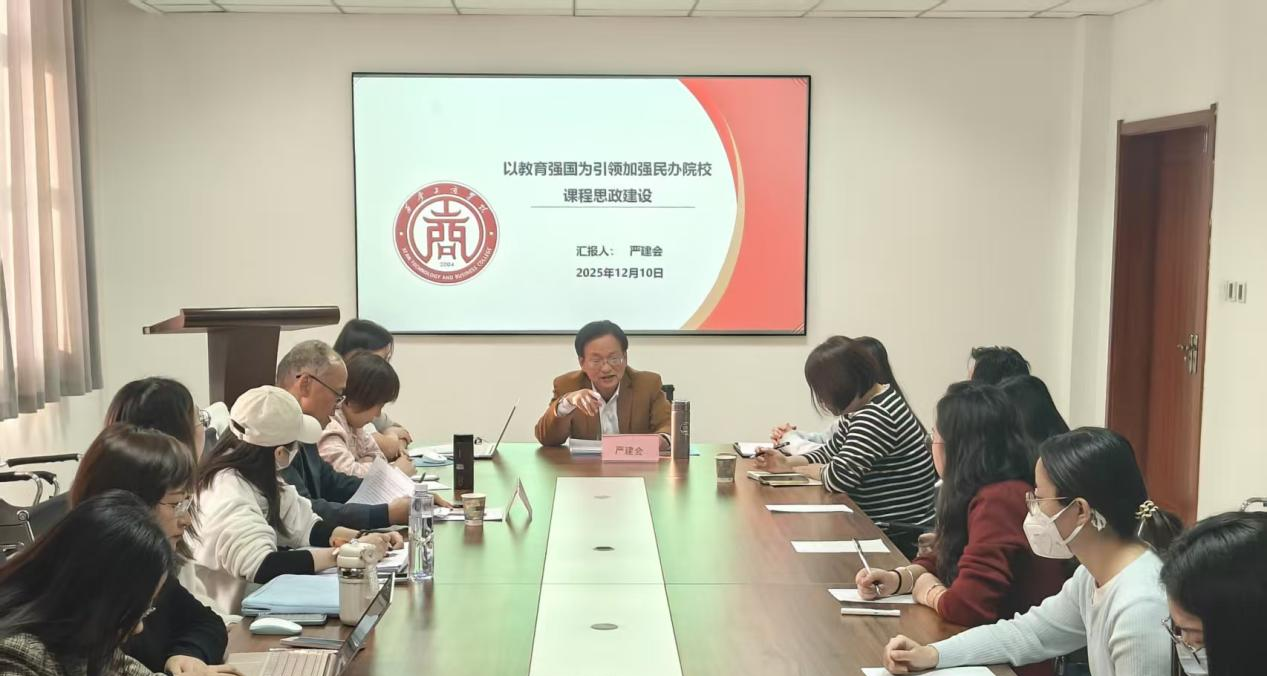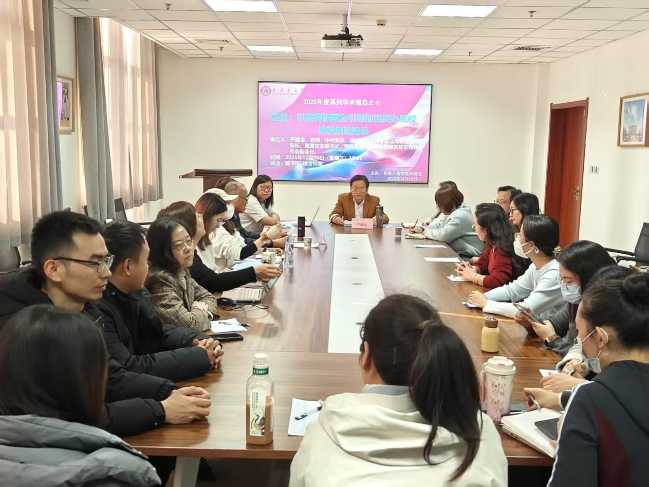 为深入贯彻教育强国战略,破解民办院校课程思政建设痛点难点,推动立德树人根本任务落地见效,12月10日下午3点,西安工商学院科研处主办的2025年度系列学术报告之七顺利举行。本次报告会以“以教育强国为引领加强民办院校课程思政建设”为主题,特邀学校马克思主义学院院长、直属党支部书记、学科带头人严建会教授担任主讲嘉宾,全校各学院教师代表齐聚图书馆5楼会议室,共探课程思政育人新路径。