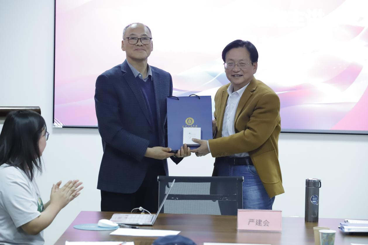 报告会最后,主持人过仕明处长作总结发言,对严建会教授的精彩分享表示感谢,代表科研处向主讲嘉宾赠送纪念品并合影留念。