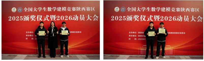 由教育部高等教育司和中国工业与应用数学学会联合主办的2025年全国大学生数学建模竞赛颁奖典礼圆满落幕。近日,竞赛颁奖典礼在陕西交通职业学院文景校区隆重举行,旨在对本届竞赛中表现卓越的学子进行表彰。全国大学生数学建模竞赛陕西赛区组委会主任、西北大学副校长曹蓉教授,陕西省教育厅高等教育处相关领导,陕西工业与应用数学学会及陕西省数学建模竞赛中心组的多位专家教授,以及陕西交通职业学院的校领导出席了本次颁奖仪式。在西安工商学院绿智制造产业学院组织下,我校教师智春艳以及省一获奖者张晓喆代表学校领取证书。