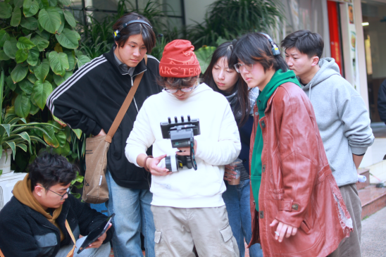 开机仪式结束后,陈院长在导演、制片人的陪同下,实地走访了首个拍摄场景,详细了解开机首日的拍摄进度,对学生影视创作保持只辅助、不干涉的原则,希望在有限的周期内,充分发挥专业所学,大胆创作,细致打磨,同时务必注意劳逸结合与人身安全。