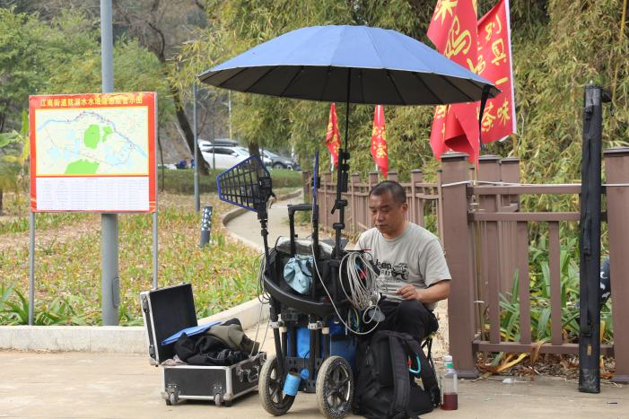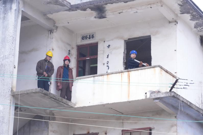 《黄鹤》导演、录音、摄影在危房中取景拍摄