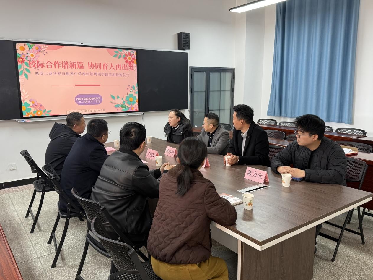 在随后的座谈会上,双方代表围绕师资共建、实践教学、学生发展等核心议题展开研讨。双方就此次合作的意义展开了积极交流,鹿苑中学代表表示期待借助本次合作实现资源互补,西安工商学院代表也希望以此次交流为契机,探索校际协同的创新路径,将充分发挥高校资源优势,为中学教育提供更多实践平台与专业指导,助力基础教育提质增效。