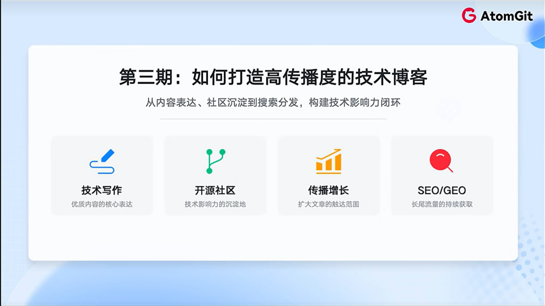 3月31日,系列直播收官之作“如何打造高传播度的技术博客”上线。直播跳出纯技术开发维度,分享Markdown高阶排版、内容结构优化技巧,拆解技术博文“爆款”逻辑,揭秘SEO/GEO优化与分发策略,助力开发者将技术沉淀转化为行业影响力。我校师生参与学习,为学术成果传播、技术科普创作提供了全新思路与实用方法。