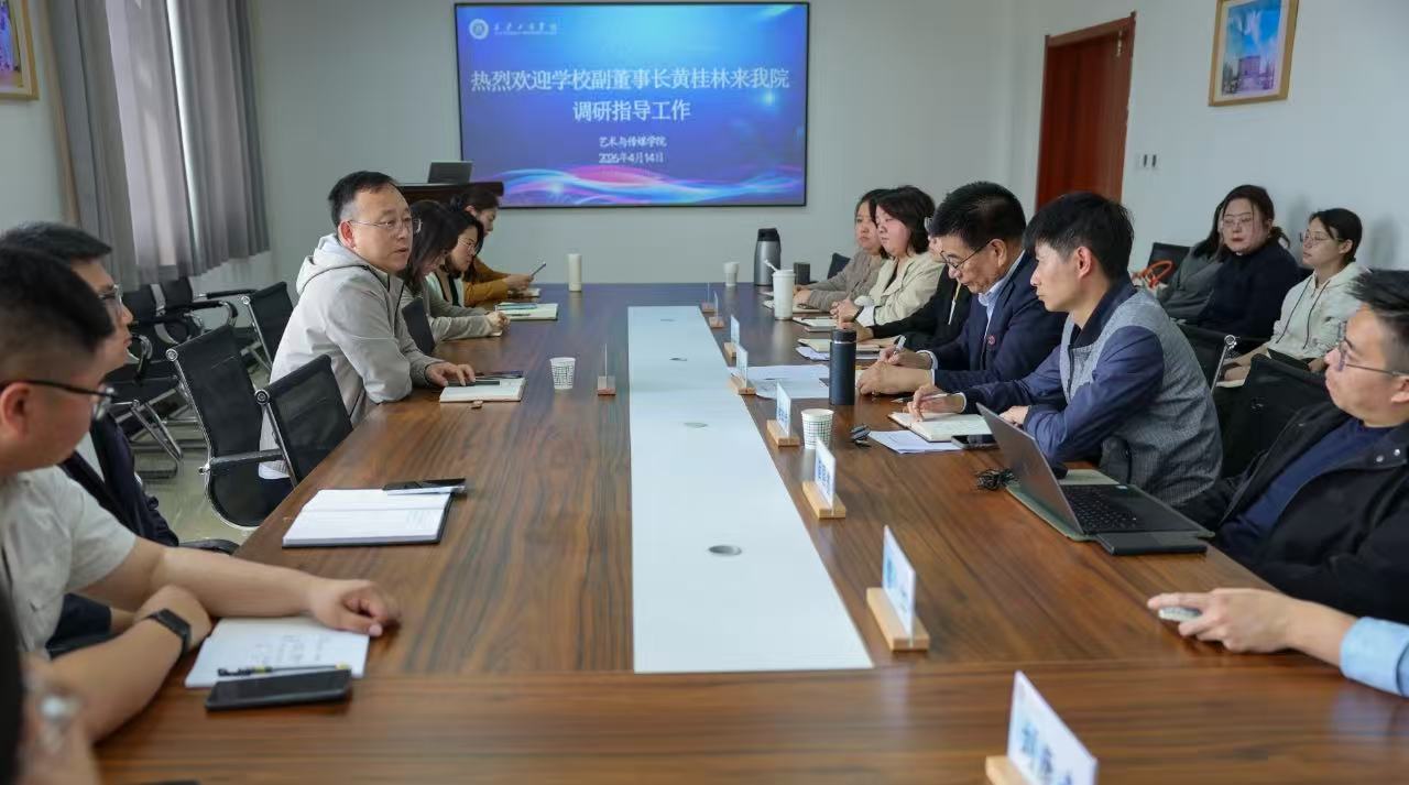 4月14日下午,学校副董事长、常务副校长黄桂林到艺术传媒学院调研指导工作,会议在图书馆五楼会议室召开。学院领导班子全体成员及学院全体无课教师、辅导员参加了会议,会议由艺传学院院长陈敏直主持。