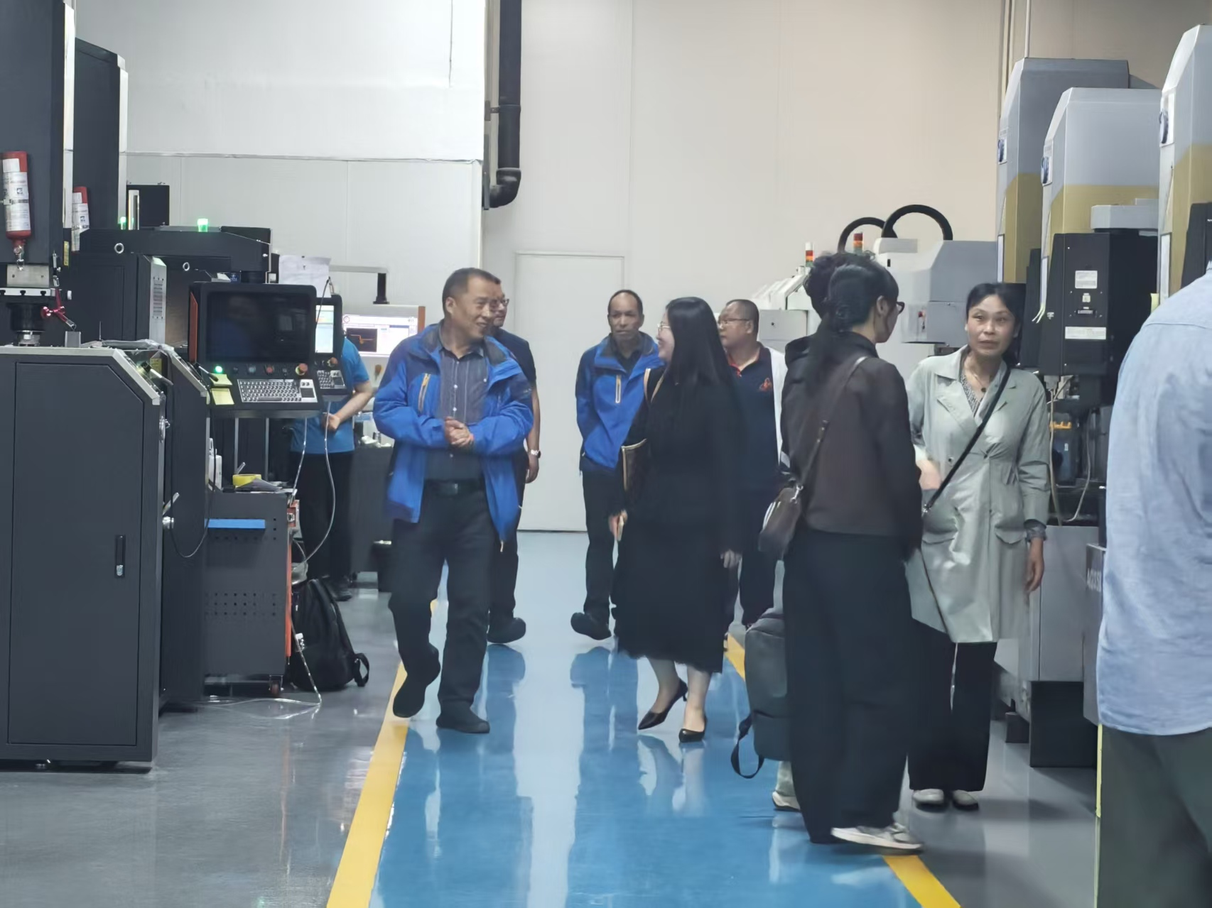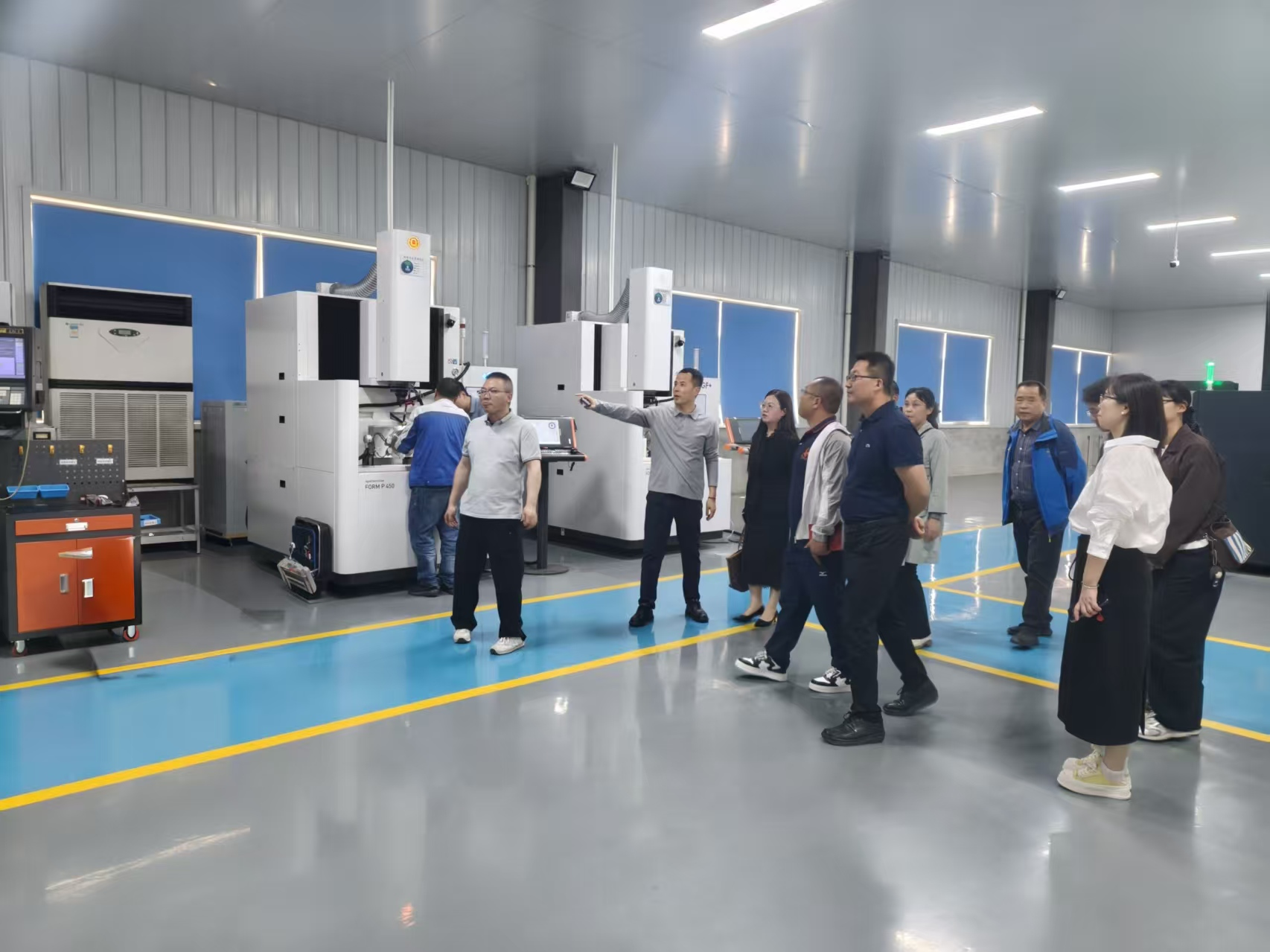 活动伊始,教师代表在企业总经理惠永卫、生产部负责人韩均波等人陪同下,实地参观了公司精密机械制造车间。车间内,电火花加工、线切割加工及五轴联动数控机床等高端制造设备有序运转,展现了企业在精密加工领域的雄厚技术实力。通过现场观摩,教师们对企业在航天部件制造中的高精度、高复杂度加工能力有了直观深入的认识。