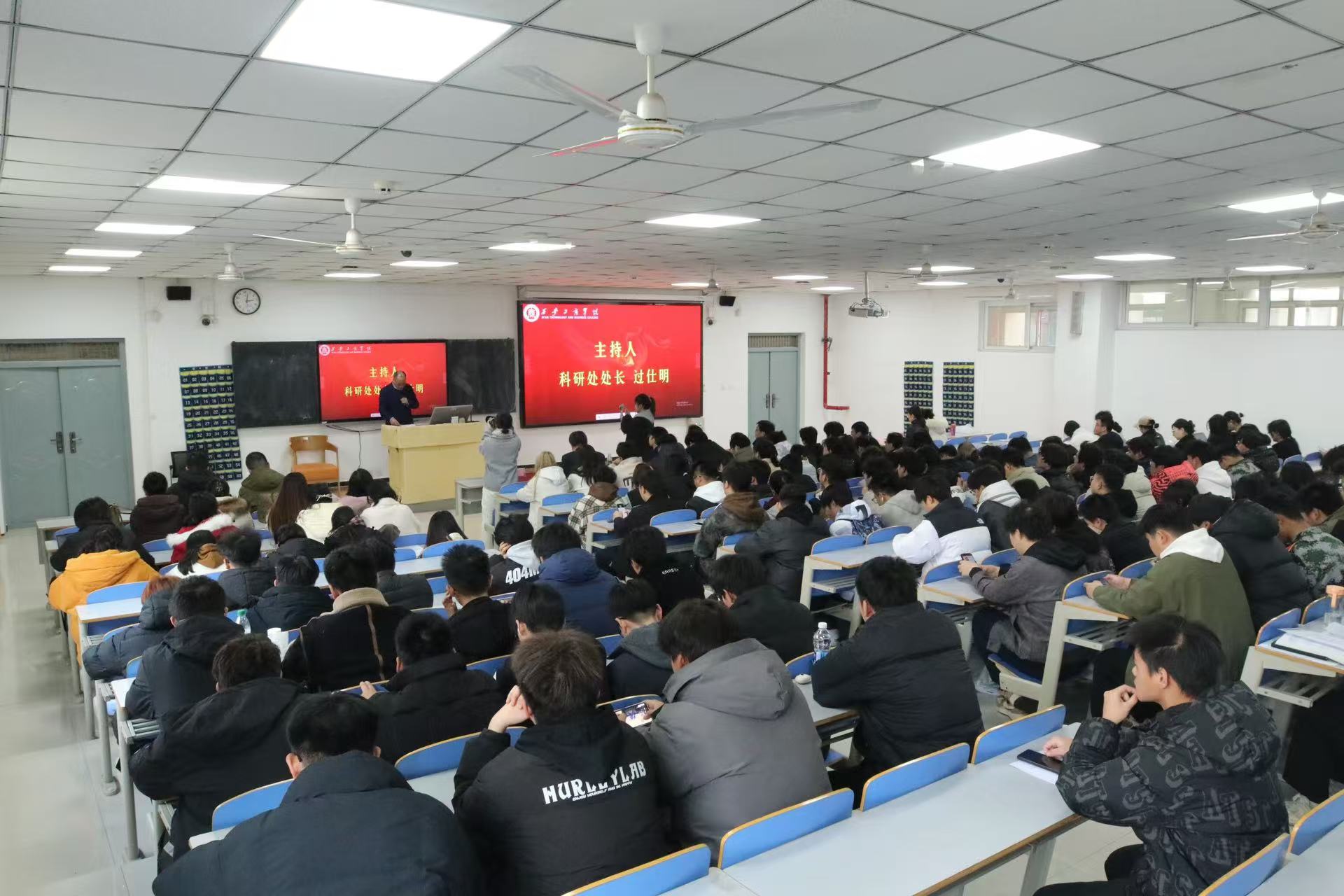 为了深入贯彻党的二十届三中全会精神,学习习近平总书记关于科研工作的重要指示,落实教育部《关于加强高校有组织科研推动高水平自立自强的若干意见》的要求。助力学校20周年校庆,进一步促进学术交流与合作,激发全校师生的科研兴趣和探索精神。12月11日,我校在2-113教室举办第二场“风华二十载,一起向未来”校庆系列学术报告,本场学术报告邀请到西安工商学院督导组专家董威教授。西安工商学院副校长程波、人事处处长闫海霞、教学质量保障中心主任邸岚、工会副主席张彬鹏参加了报告会。报告会由科研处处长过仕明主持。