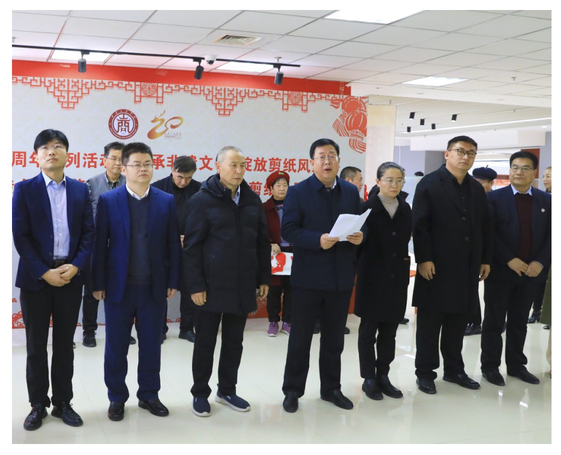 田伏虎书记首先代表西安工商学院向长期关注、支持我院各项工作,尤其是非物质文化遗产研究工作的社会各界表示衷心的感谢,向前来参加段晓荣唐诗书法剪纸艺术作品开展仪式的各位领导、各位来宾、文化界朋友致以热烈的欢迎和诚挚的问候!