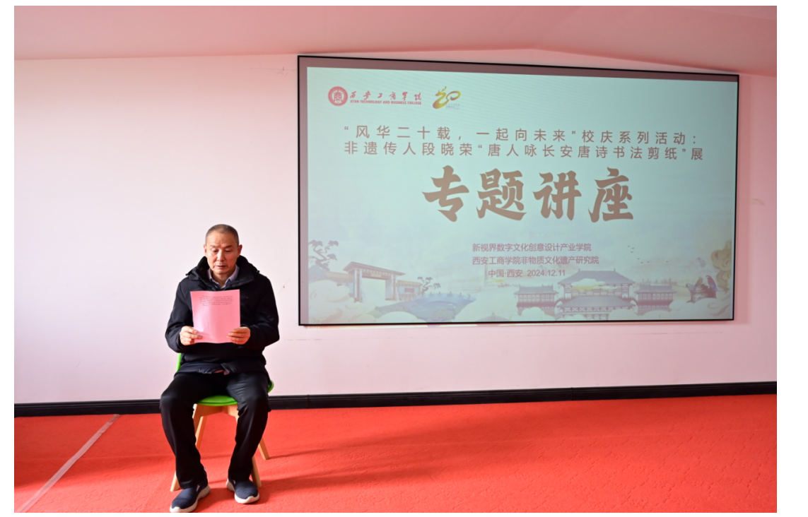 12月11日下午,以“传承非遗文化,绽放剪纸风采”为主题的校庆二十周年系列活动之非遗传人段晓荣“唐人咏长安”唐诗书法剪纸展,在西安工商学院图书馆(五楼)隆重举办。该展览由西安工商学院主办,新视界设计产业学院、非物质文化遗产研究院承办。