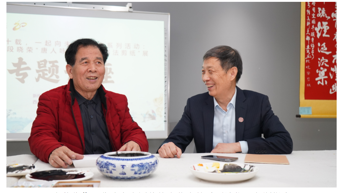 段晓荣致答谢辞说,唐诗是中华文化宝库中的瑰宝,它以凝练的文字、丰富的情感和深远的意境,承载着千年的历史与智慧;书法,作为中华民族独特的艺术形式,用笔墨书写着文明的脉络与精神的风骨;剪纸艺术,则源自民间,以质朴而精巧的手工技艺,展现着生活的百态与美好的祈愿。